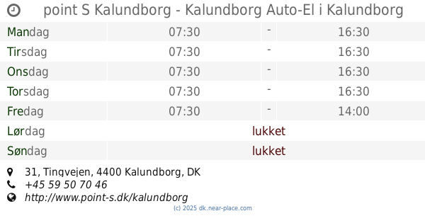 | Søndag | lukket | |||||